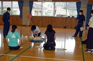 6月22日からの水遊び・水泳運動の学習を前に、東児湯消防組合の方を講師にお招きし、心肺蘇生法を中心とした救命救急法の研修を行いました。毎年行っている研修ですが、改めて、万が一に備える心構えと技能の習得ができました。