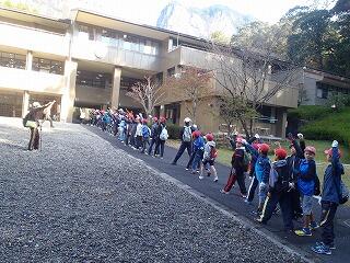 最大の活動と言える「行縢山登山」が行われました。「のぼれるかなあ。」不安な表情で出発です。