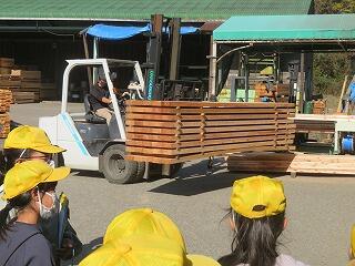 製材所見学では、たくさんの機会があり、運ばれてきた木がどんどん加工されていく様子を目の当たりにし驚いていました。