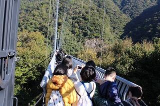 綾町の大吊橋では、あまりの高さに驚き、恐る恐るゆっくりと橋を渡りました。