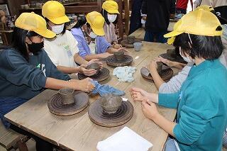 そして、綾城を見学しました。綾クラフトパークで陶芸体験を行い、手びねりで湯呑を作りました。