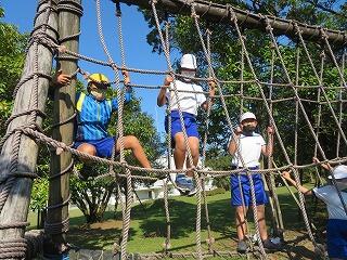 部屋の片づけ、奉仕活動をした後は子どもたちも楽しみにしていたフィールドアスレチックの時間です。この日も班長を中心に協力しながらたくさんのアスレチックで楽しい汗を流すことができました。