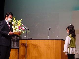 その中の讃嘆式で、「木城小2年朝ボラ隊!!」の児童8名が自主的な清掃活動で、木城小6年生が昨年度から取り組んでいるあいさつ運動でそれぞれ表彰されました。