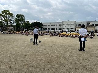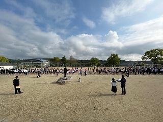 5月に行われる運動会の初めての全体練習が行われました。今日は開会式の練習という事で、整列の確認や、ラジオ体操などを中心に練習を行いました。団長やリーダーたちが積極的に声をかけて活動する姿が印象的でした。