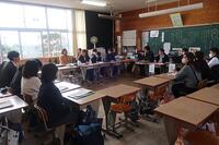 川南小の授業を参観したあと、知育、徳育、体育の3部会に分かれて