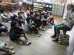ただ、従来のような「密集」はつくれませんので、座席に着いたままで行いました。当然絵本が見えませんので、実物拡大機を使ったり、大型絵本で行っていただきました。また当然マスクです。口に動き、表情は、読み聞かせの大事な一部ですが、しばらくはこのスタイルで行っていきます。