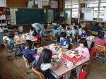 最初ですので、比較的嫌いな子が少なく食べやすいカレーです。サラダ、デザートも付いています。「野菜は大丈夫?」という心配がありましたが、好きだという子どもが結構多かったようです。「給食、おいしい」という声がたくさん上がりました。