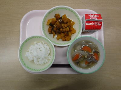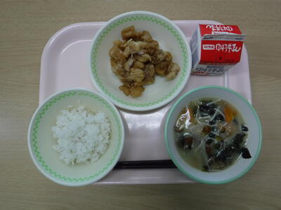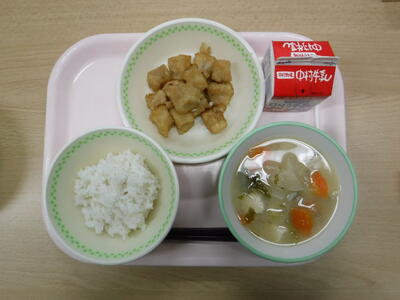 今日は子ども達の好きな唐揚げでした。唐揚げは減らす人も少なく、もりもり食べていました