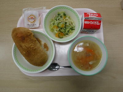 【コッペパン スコッチエッグ 野菜スープ 黒豆きなこクリーム 牛乳】