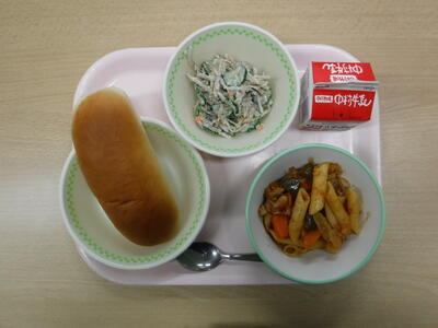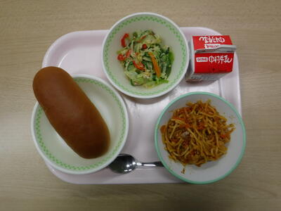 給食メニューは、やきそば、コーンラーメン、カレーうどんでした。