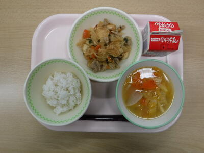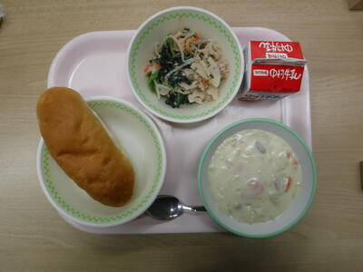 新学期がスタートしました。みなさん、期待に胸をふくらませているのではないでしょうか。環境が変わるこの季節は、緊張や不安から体調を崩しやすくなる時でもあります。睡眠をしっかりとり、朝ごはんを食べて登校するようにしましょう。また、みなさんの体の成長にあわせて給食の量も少しずつ増えていますので、好き嫌いせずにしっかり食べて元気に学校生活をおくりましょう。今日は、シチューのお話です。シチューはヨーロッパのいろいろな地方に古くからあった料理で、西洋風の煮込み料理のことです。もともと「シチュー」という言葉は「閉めきったところで汗をかく」とか「暑い蒸し風呂」という意味があり、それが広く煮込み料理を指す言葉として使われるようになったそうです。日本の家庭でも食べられるようになったのは昭和に入ってからです。今日のシチューはデミグラスソースを使ったポークシチューです。今日の川南町でできた食べ物は、豚肉、玉ねぎ、きゅうりです。
