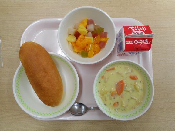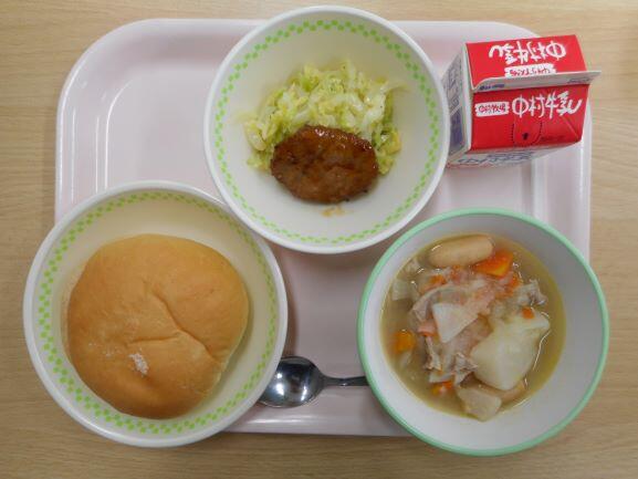 【ミルクパン ポークビーンズ フレンチサラダ 牛乳】