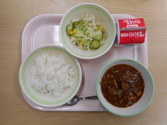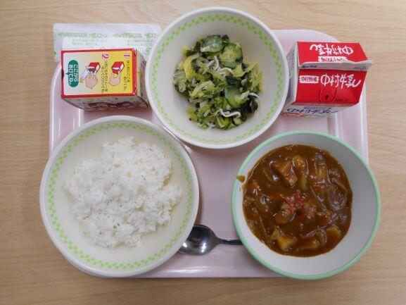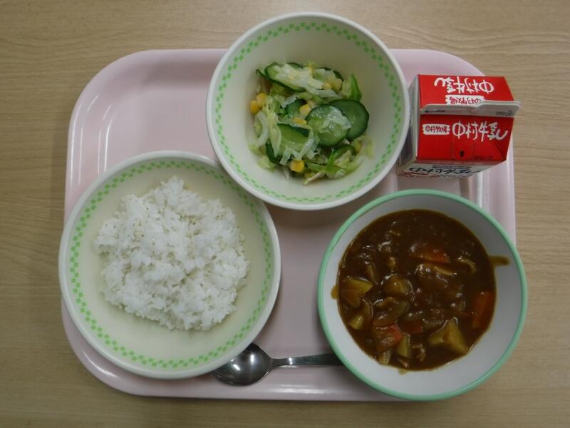 【チキンカレー アスパラサラダ 牛乳】