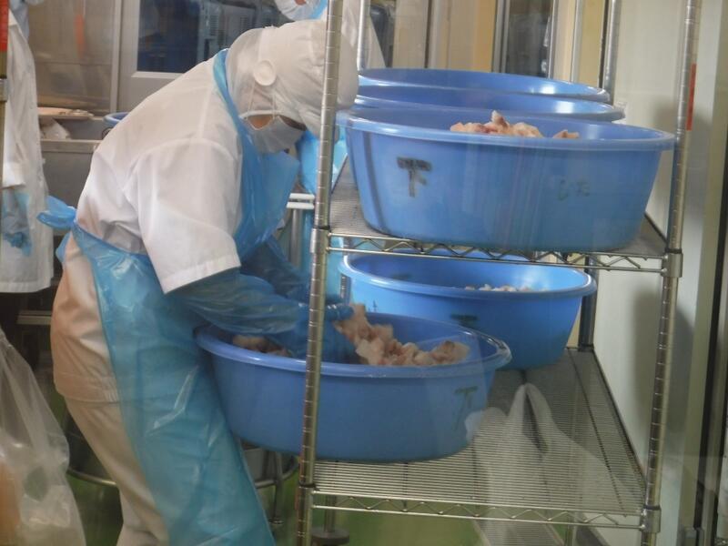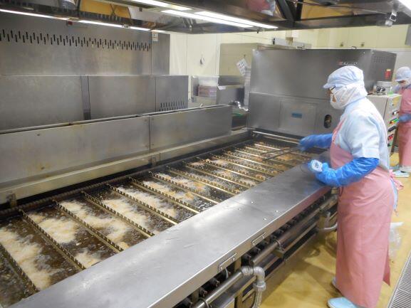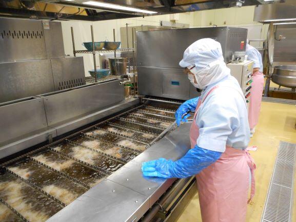 今年度は食材提供事業により、特別に給食にマダイを使うことができます。今日は、角切りされたマダイに下味をつけ、片栗粉をまぶして揚げたあと、ねぎとごまみそのタレと混ぜ合わせました。マダイの身が柔らかかったので、タレと混ぜるときに少し崩れてしまいましたが、おいしく出来上がりました