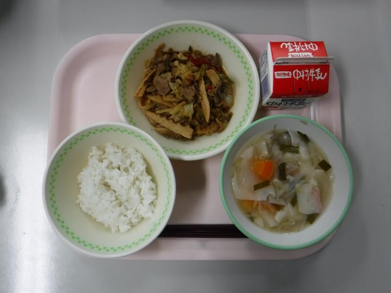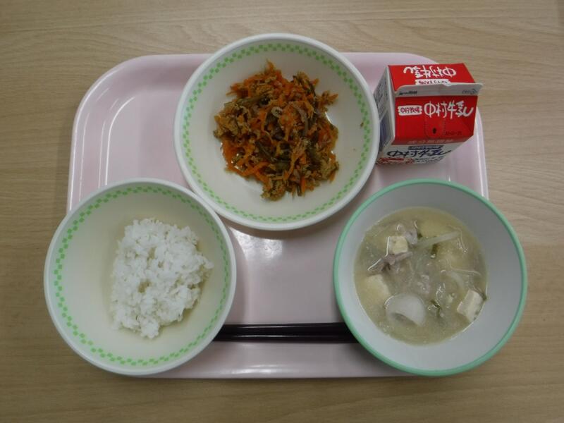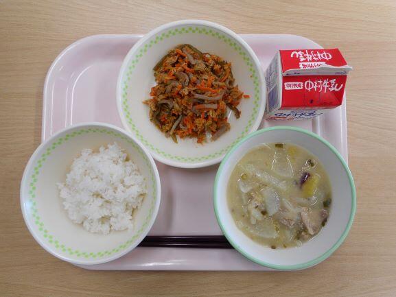 【麦ごはん にんじんしりしり 豚汁 牛乳】