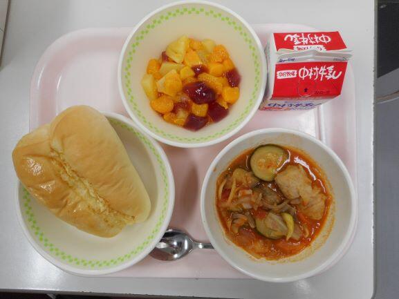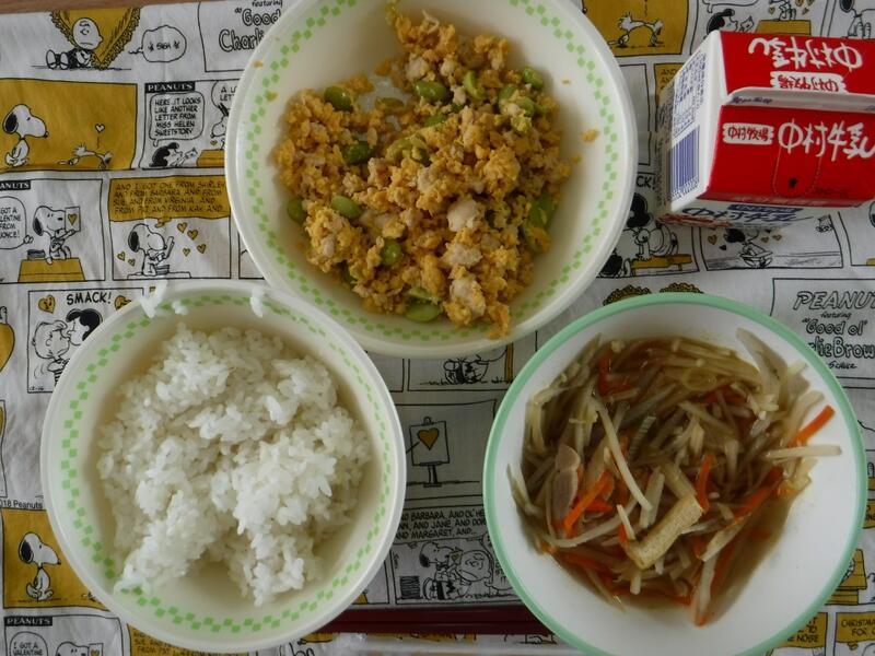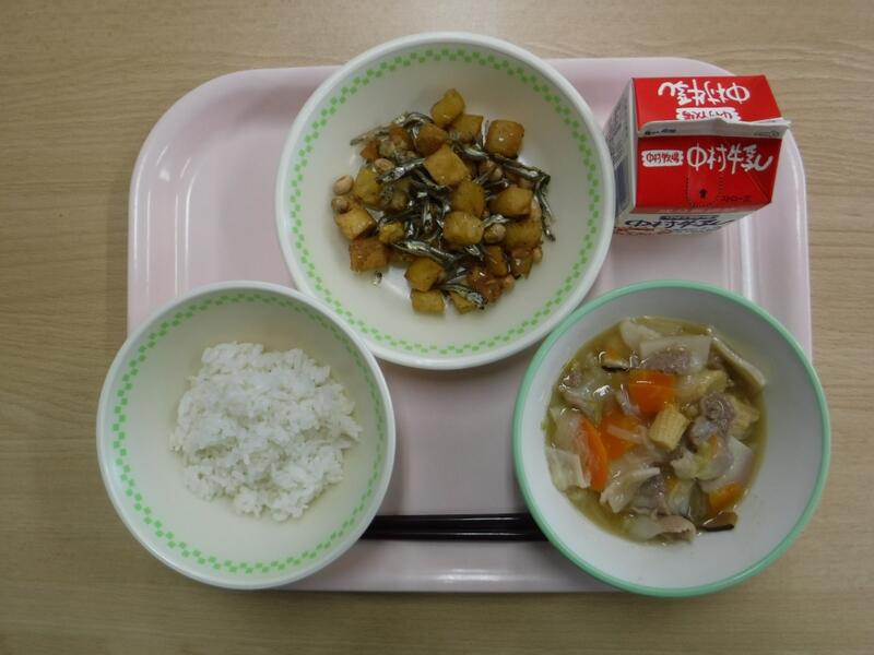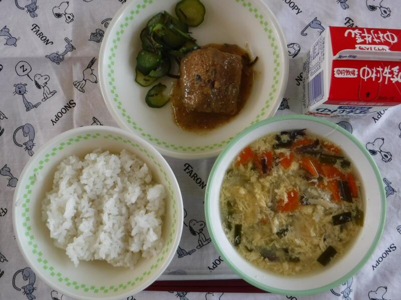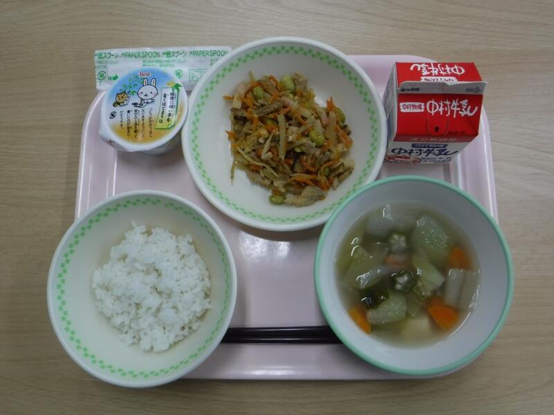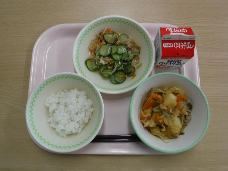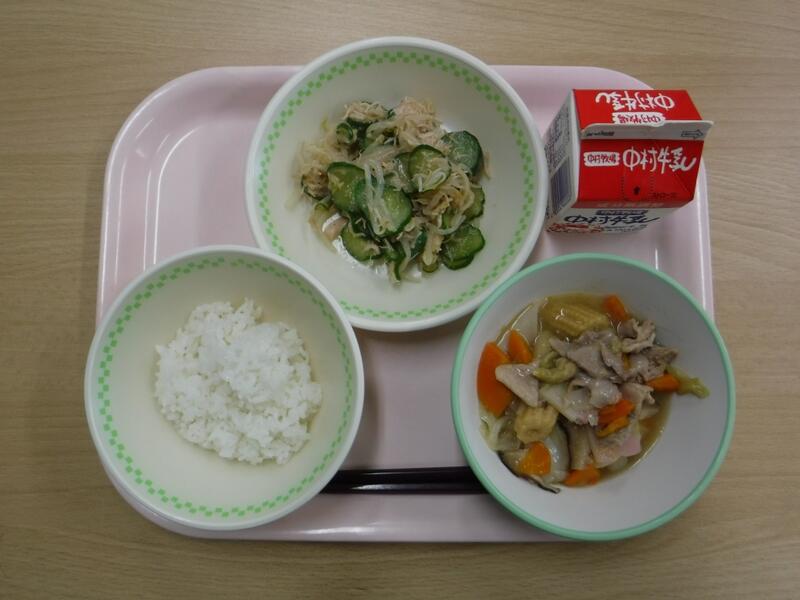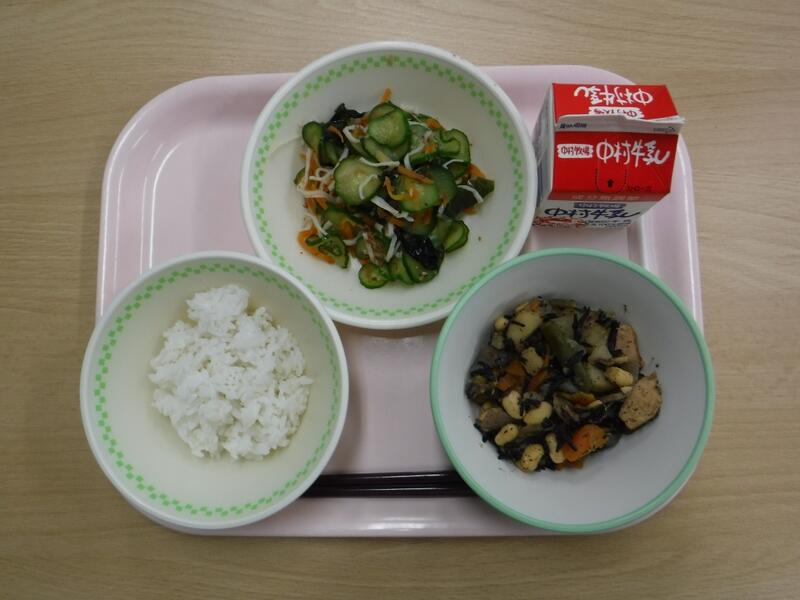 今日は19日なので、食育の日です。食べることは、生きる上での基本だと、よく言われます。元気な体がなければ、みなさんは勉強や運動にも身が入らず、もっている力を十分に発揮することができません。なんだか調子が悪い、とか、ささいなことにイライラしたり、気分が沈んだりする、という人はいませんか?何を食べるかは、心と体の調子にもかかわっています。好きなものだけでなく、いろいろなものを食べて、元気な心と体を作りましょう。今日の川南町でできた食べ物は、ぶた肉、たまねぎ、なす、きゅうりです。