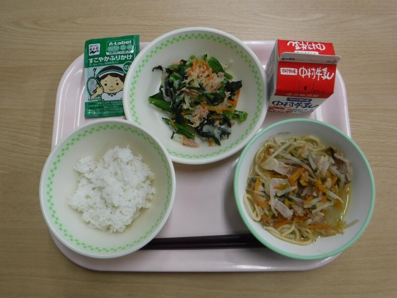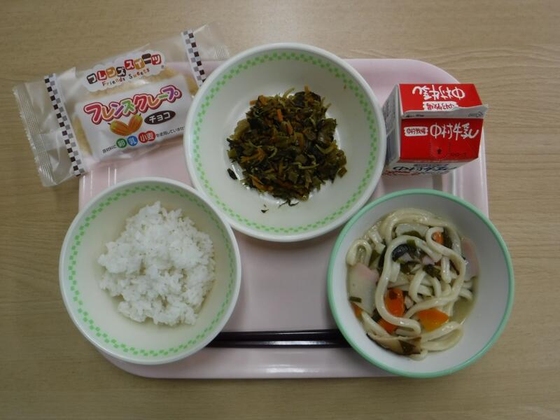 給食メニューは、やきそば、コーンラーメン、カレーうどんでした。