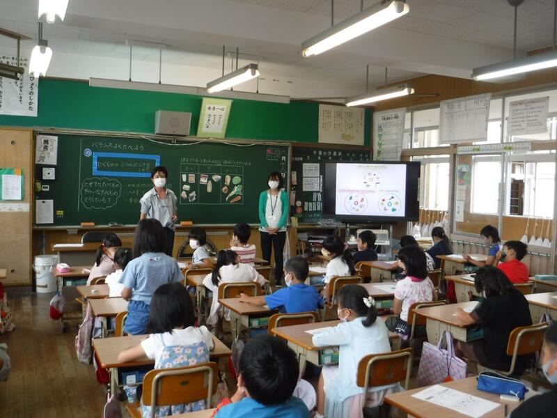 今日はおやつの話をします。学校から帰って、夜ご飯の前におやつを食べている人は、その量に要注意です。おやつを食べすぎて、ごはんが食べられなくなったということはありませんか?小学校に入るまでは、胃が小さく、一度の食事でたくさん食べられないので、おやつの時間がありました。おやつを食べてはいけない、ということではありませんが、みなさんが好きなチョコレートやアイスクリーム、ジュースなどには、体を丈夫にしてくれるような栄養はあまりありません。おやつを食事の代わりにしてはいけないのはこのためです。おやつはたまに、少し楽しむくらいがちょうどいいですね。夏休みも近付いています。おやつのとりかたを見直してみましょう。今日の川南町でとれた食べ物は、米、豚肉、ねぎ、きゅうりです。
