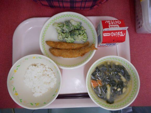 今日の小さいおかずは、さんまのみぞれ煮でした。これは、圧力をかけて骨までやわらかくしてあるので、カルシウムもとれて甘い味付けでおいしく食べられます。脳の働きや健康に良く、体を作るたんぱく質も豊富な青魚をたくさん食べてほしいので、給食では、月に1回は今日のようなさんまの他に、いわし、さばなどの魚を出しています。日本人は、昔から魚をよく食べていましたが、その量もだんだん減り、最近では肉の消費量に追い越されてしまいました。給食だと、調理方法が限られるため毎日というわけにはいかないので、お家でもどんどん食べてほしいです。骨があるので苦手という子には、刺身やお寿司などでもいいですね。(生の魚の方がDHAなどの栄養はたくさんとれますよ!)