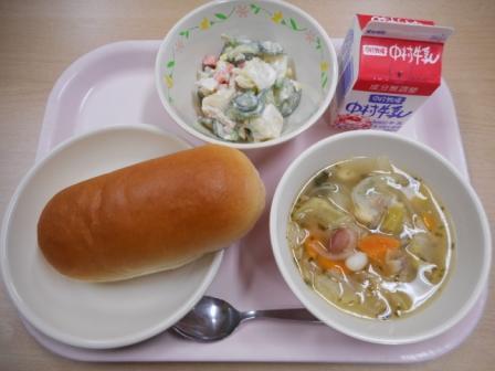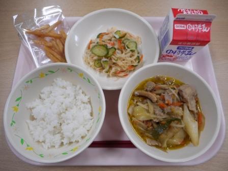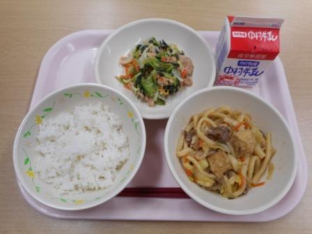 給食メニューは、やきそば、コーンラーメン、カレーうどんでした。