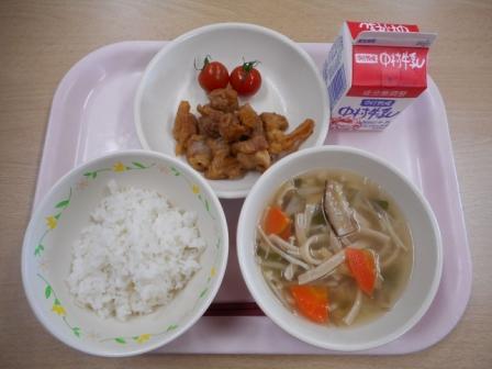 今日は、2学期最後の給食です。東小6年生のリクエストメニュ―で、クリスマス献立にしました。
