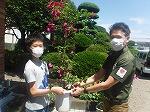 今回は、西側。県道に面した西端、フェンスの外ですが、あじさいが鮮やかです。西門付近に目を移すと、新しく植え替えた花が元気に育っています。また、種から育てたヒマワリが花を咲かせ始めました。夏の到来を感じます。