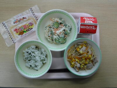 【麦ごはん 中華丼 ゆでとうもろこし 牛乳】