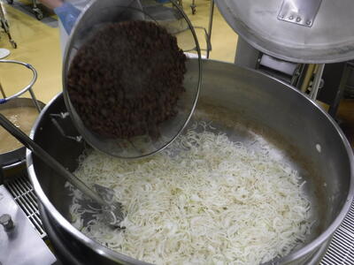 このメニュー、ゆでるときに肉同士がくっつきやすくなかなか大変なのですが、毎年試行錯誤しながら調理員さんが作ってくれます。