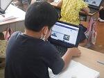 下記の写真は、本時(ICTグループ)の2時間前の授業の様子です。宮崎大学の小林先生に来ていただき、アドバイスをいただきました。