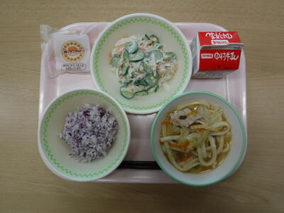 給食メニューは、やきそば、コーンラーメン、カレーうどんでした。