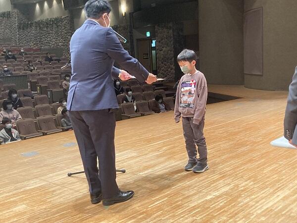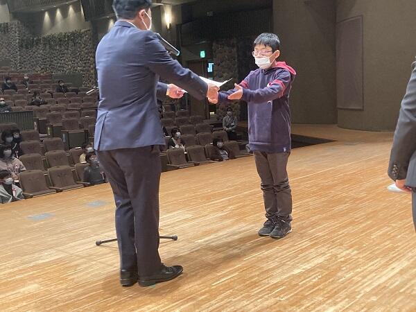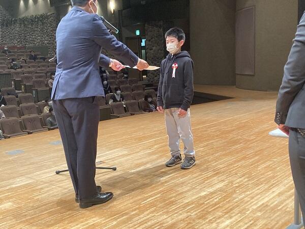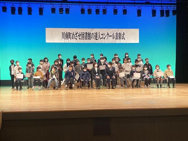 先週土曜日の21日に、サンA川南文化ホールで「川南町 めざせ図書館の達人コンクール」(感想文、感想画、調べ学習のコンクール)の表彰式が行われました。川南小からは、10名が表彰を受けました。大きなホールの舞台で、知らない人がいる中、賞状を受け取ることに緊張したことと思いますが、礼儀に気を付けて受賞することができていました。
