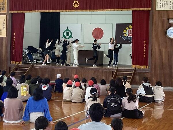 クラブで練習を繰り返してきたものの、発表の場がありませんでした。「発表したい」という思いを実現させるため、自分たちで給食時の放送で全校に呼びかけ、発表の場をセッティングして実現させることができました。