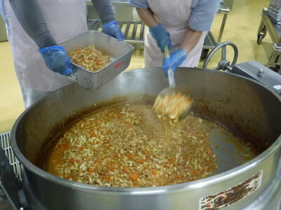 今日は、中学校のリクエスト給食のアンケートをとった際に一部で名前が挙がっていた韓国料理として、タッカルビを作ってみました。鶏肉にコチジャン、味噌、砂糖、しょうゆなどで下味をつけ、キャベツやたまねぎ、にんじんなどの野菜、トッポギと炒めました。下味をつけ始める9時くらいから、給食センターはみそのいい匂いがいっぱいで、全校体育を終えた子ども達にもいい匂いが届いたのではと思います。