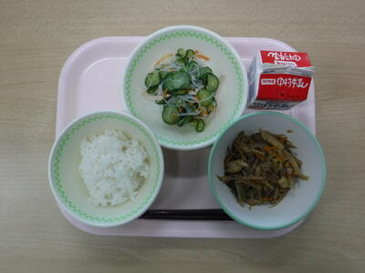【麦ごはん 五目きんぴら 春雨サラダ 牛乳】