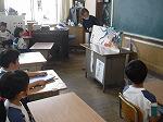 5年生は、始めに学校で、古墳の話や宗麟原の戦いの話を川南町教育委員会の徳田さんに教えてもらました。