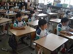 写真は1年生です。時間帯は午後2時過ぎ。本日は歯科検診の関係で、5時間目は給食後の午後になっています。平素は、昼休みから清掃の時間帯ですので、この時間にテストは初めての経験ではないでしょうか。大人でも眠い時間帯ですが、しっかり脳を働かせてテストに臨んでいました。成長を感じます。