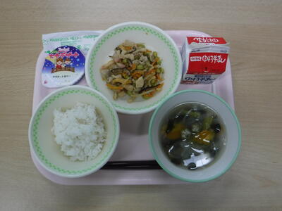 【麦ごはん セルフ五目ずし 七夕汁 七夕ゼリー 牛乳】