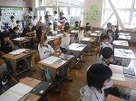 子ども達は、タブレットにある川南町全図に気づいたことを書き込んでいきます。また、タブレットをもって友だちと考えを共有していきます。教師は、児童一人一人にタブレット画面を電子黒板で確認しながら、目標に迫っていきます。本学級は、タブレットを使い始めて1ヶ月がたっており、ずいぶん使いこなしている実感があります。「楽しく学ぶ」ことはできたととらえていますが、「社会科の目標は達成できたのか?」は検証が必要です。しっかり反省して次に生かしていきます。