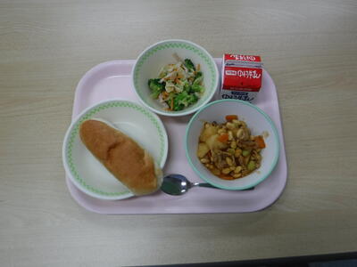 【コッペパン さつまいものシチュー りっちゃんサラダ 牛乳】