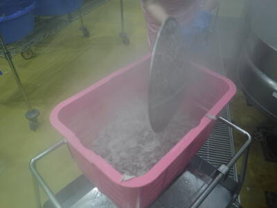 今日は、中学校のリクエスト給食のアンケートをとった際に一部で名前が挙がっていた韓国料理として、タッカルビを作ってみました。鶏肉にコチジャン、味噌、砂糖、しょうゆなどで下味をつけ、キャベツやたまねぎ、にんじんなどの野菜、トッポギと炒めました。下味をつけ始める9時くらいから、給食センターはみそのいい匂いがいっぱいで、全校体育を終えた子ども達にもいい匂いが届いたのではと思います。