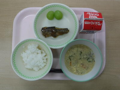 【麦ごはん 秋野菜の煮物 魚そうめん汁 牛乳】