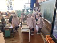 今週から一年生は自分たちで給食当番をして、おかずやご飯、牛乳などを運んでいます。重たいけれども、自分たちのことは自分たちで頑張ってます。おかずをつぎ分けたりすることは6年生が手伝っていますが、配ることは自分たちでやっています。