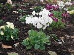 正門を入って東側の花壇には、パンジー、ビオラ、そしてサクラソウを植えています。