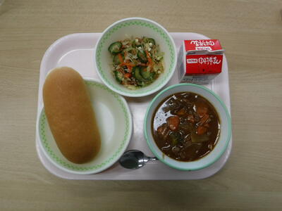 シチューはヨーロッパのいろいろな地方に古くからあった料理で、西洋風の煮込み料理のことです。もともと「シチュー」という言葉は「閉めきったところで汗をかく」とか「熱い蒸し風呂」という意味があり、それが広く煮込み料理を指す言葉として使われるようになったそうです。日本の家庭でも食べられるようになったのは昭和に入ってからです。今日のシチューはデミグラスソースを使ったビーフシチューです。じっくりと煮込んでいますので肉や野菜からうまみがでておいしいビーフシチューになっています。今日の川南町でできた食べ物は、じゃがいも、人参、キャベツ、きゅうりです。