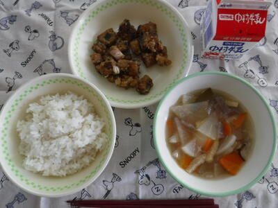 年に2回ほど出る揚げパン。今日はその2回目で、6年生のリクエストメニューでした。6年1組は前回揚げパンを食べることができなかったので、今日を待ち望んでいたようです。小学校最後の揚げパンでしたね。