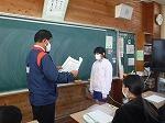 三つ目は、町の善行児童表彰として、児童会活動の一つである「運営委員会」が表彰されました。本来であれば、2月に行われる町の生涯学習大会の際に、町民の前で贈呈式が行われるのですが、感染対策で大会が中止になりましたので代わりに学校で行いました。