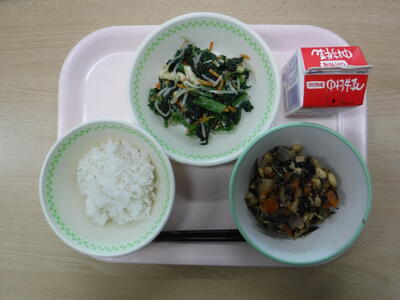 明日は小学校が遠足のため、一足早く、今日がひな祭りのメニューになりました。給食の目標の1つに、「食文化の理解」があります。日本には、昔から、お祝い事のときにはちらしずしを食べる文化がありましたが、最近では、食の多様化とともに郷土食や行事食など、伝統的な食の風習も薄れつつあります。給食で、行事に合わせたメニューを食べることが少しでも食文化の継承につながっていくといいなと思います。