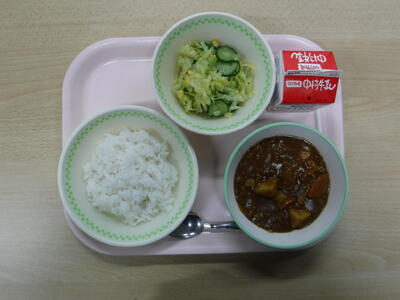 【麦ごはん ポークカレー フレンチサラダ 牛乳】