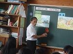 ① 6年生の外国語の授業参観。自分が紹介したいもの(場所や食べ物等)を決め、いろいろな人に伝えるという学習です。委員の方々も聞き役に入っていただきました。子ども達が、楽しく英語を学んでいるという感想をいただきました。