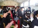 運動場で行う予定でしたが、今日もあいにくの雨。放送で行いました。顔が見えないままというのは寂しいので、最後に、校内を廻っていただきました。子どもたち一人一人の顔が見えるお別れができました。